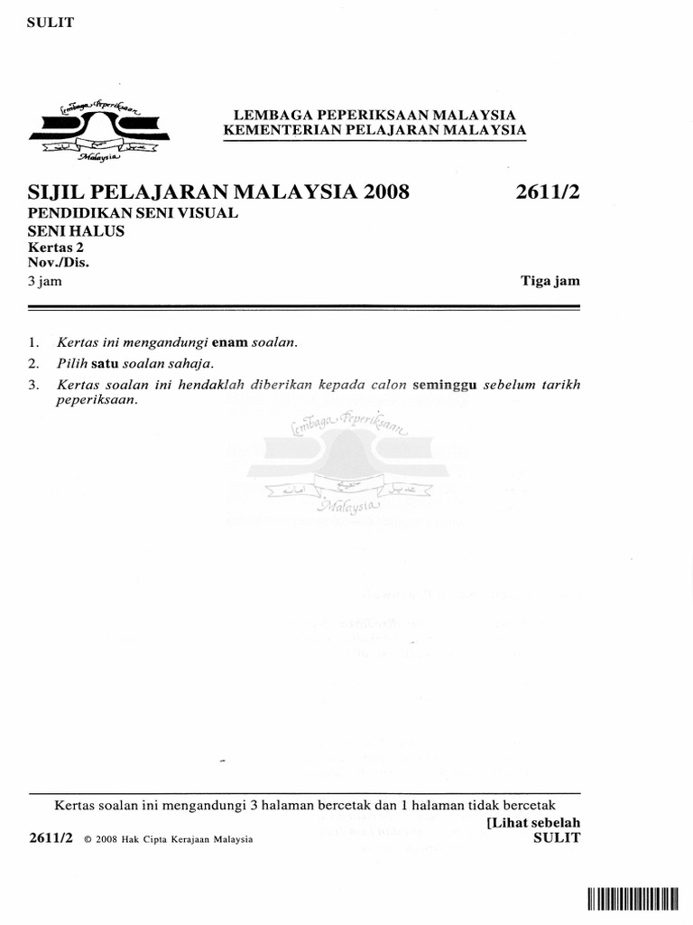 Pendidikan Seni Visual Soalan Psv 2611 2 Tahun 2011 Otosection
